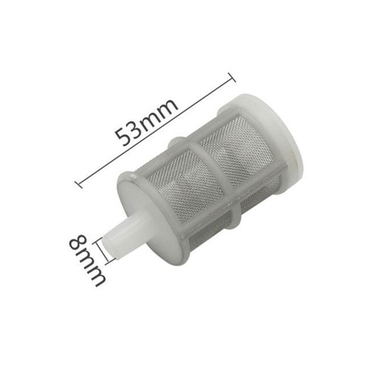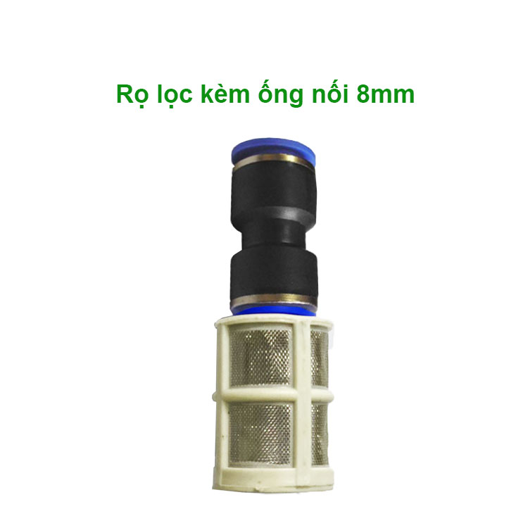 Đầu lọc rác cho máy bơm mini 12v tưới phun sương, rửa xe, tưới rau, hoa. Cấu tạo bằng nhựa và lưới thép không gỉ, mắt lưới nhỏ ngăn rác, cặn bẩn trong nước làm tắc đường ống